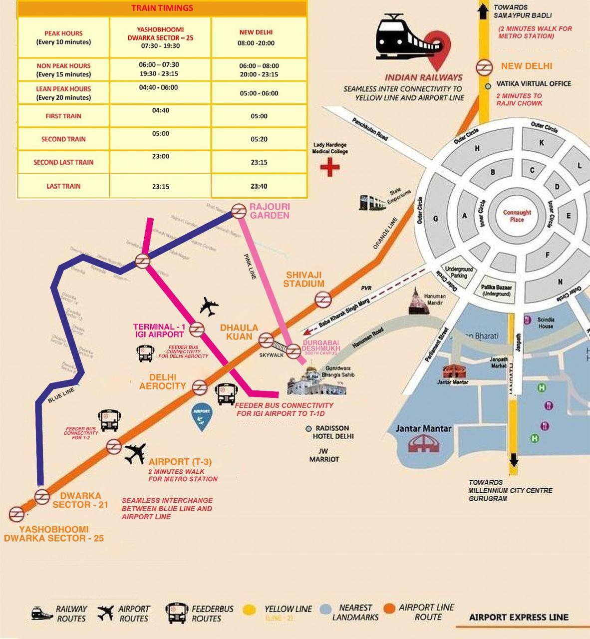Airport Express Line(別名:Orange Line)は、2011年2月に運行が開始されたデリー空港に接続している唯一の電車です。