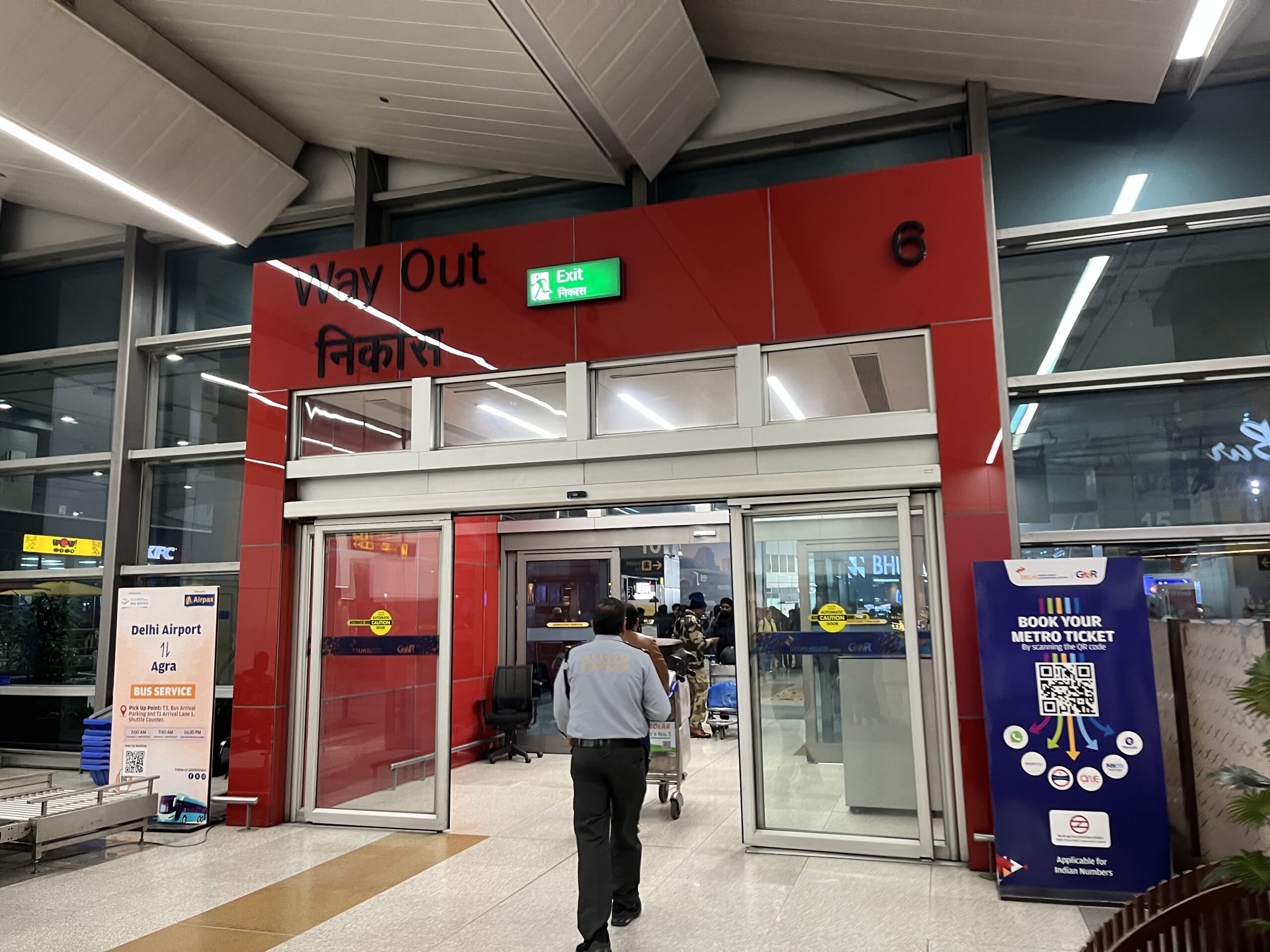 デリー空港の駅に行くには、まず空港ターミナル(T3)から出ましょう。