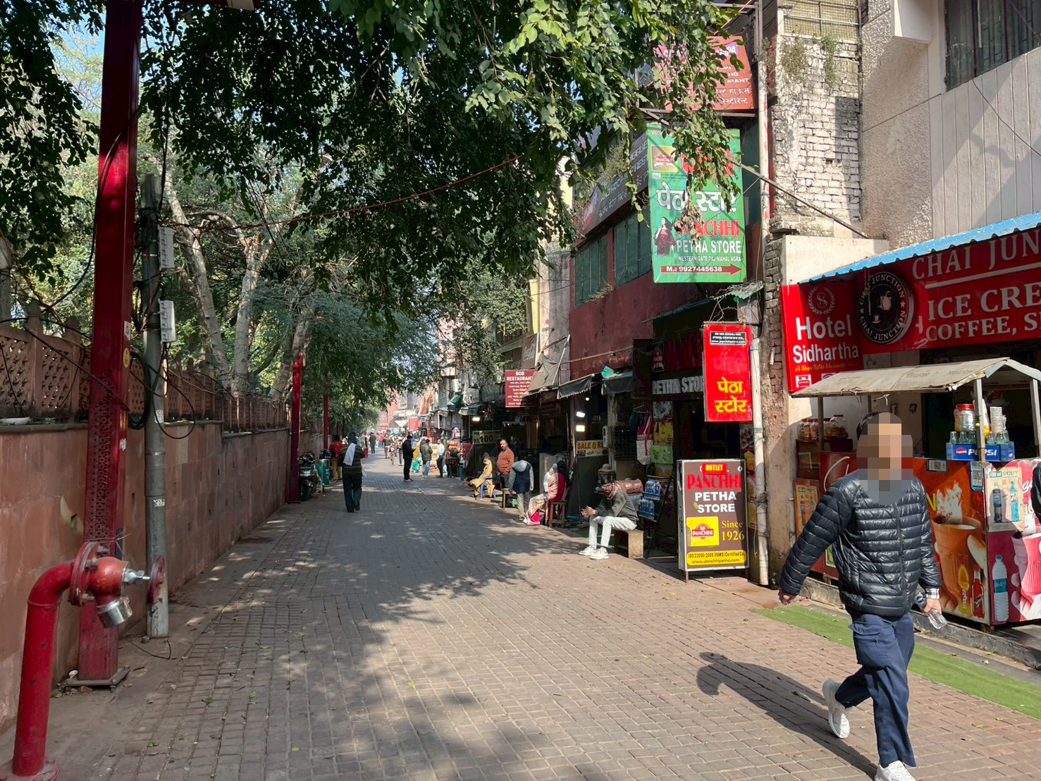 オートリキシャを降りてから西ゲートまでの道中。(2つルートがあり、こちらは少し遠回りだが、お店がたくさんある通り)