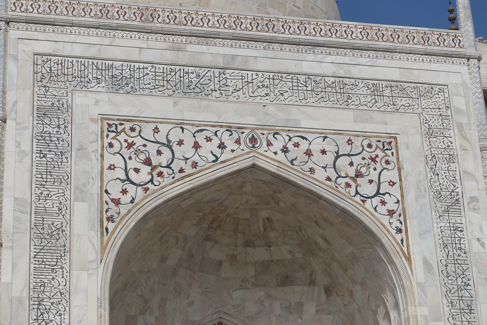 建築様式はムガル建築の集大成とされ、ペルシャ、イスラム、インドの要素が融合したデザインが特徴。白大理石の外壁には精巧な象嵌細工が施され、宝石や半貴石を使った装飾が当時の技術の高さを物語っています。