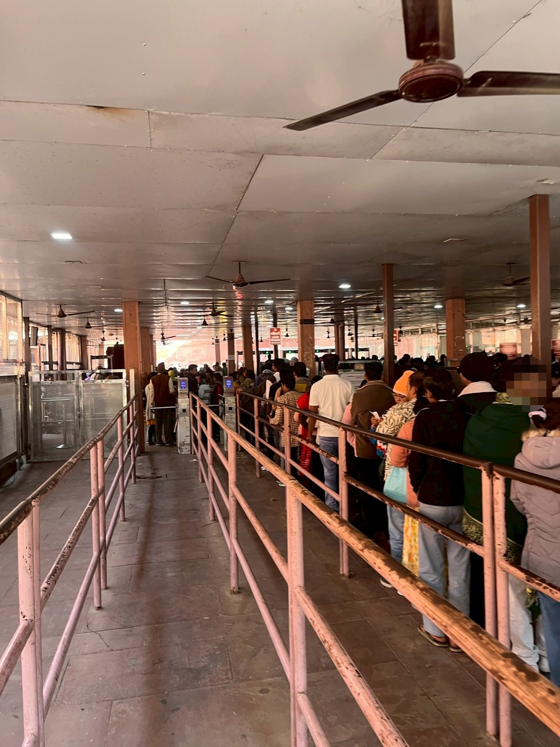 改札の後は、手荷物検査ですが、ここからは外国人もインド人も同じ列になりますので、満員電車並みの人だかりで、20分ほど待ちました。