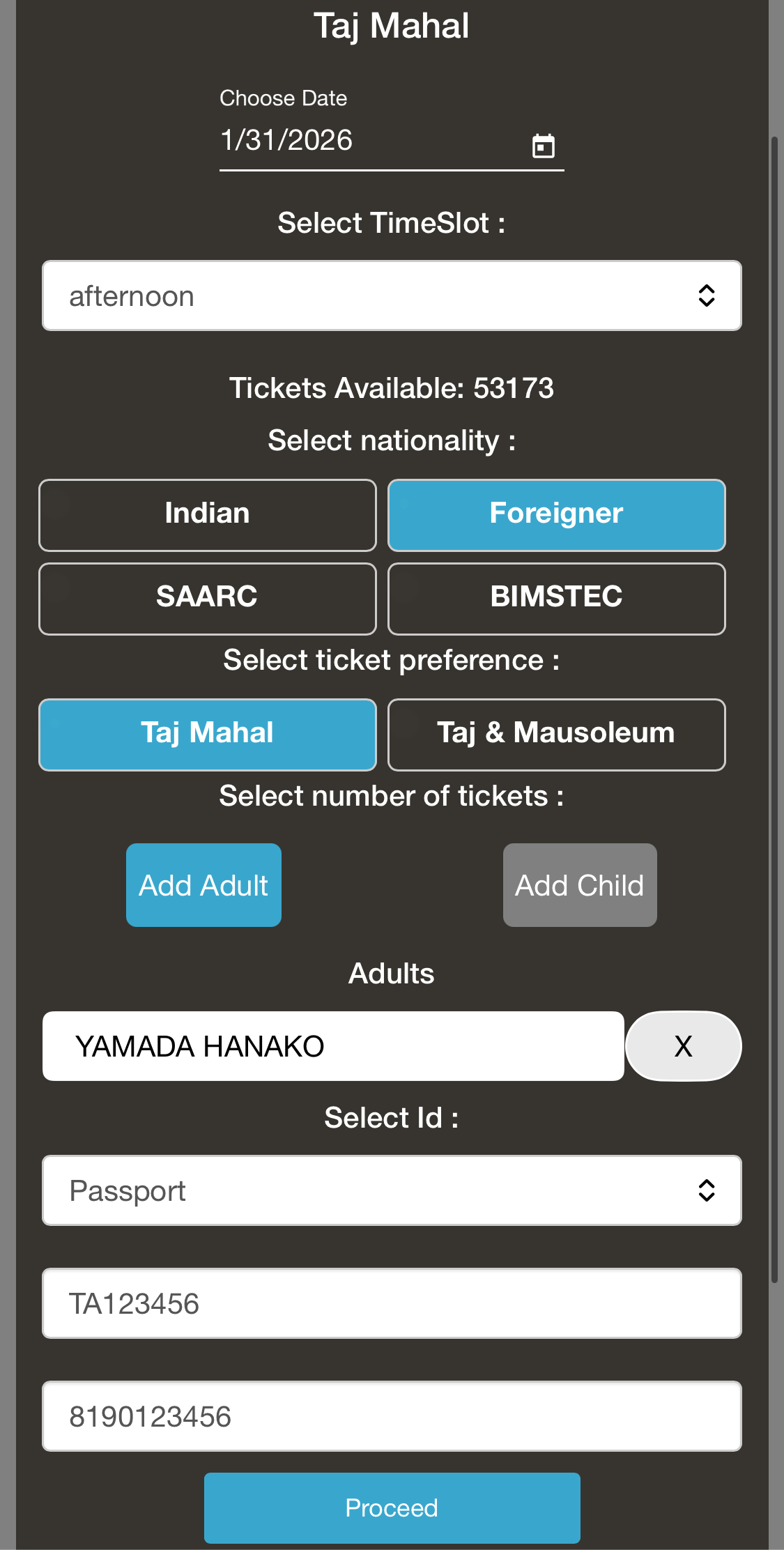 2人以上の場合:「Add Adult」を押すと、人数を追加できます。同行者の名前は入力が必要ですが、パスポート番号は不要です。