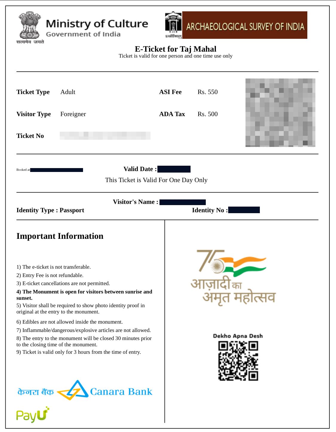 オンラインで購入する方が、50ルピー安くなり、窓口で並ぶ必要もないのでオススメです。