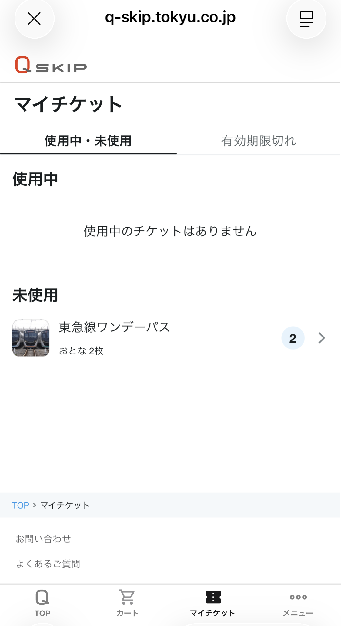 未使用に表示されているチケットをタップすることで利用が可能です。