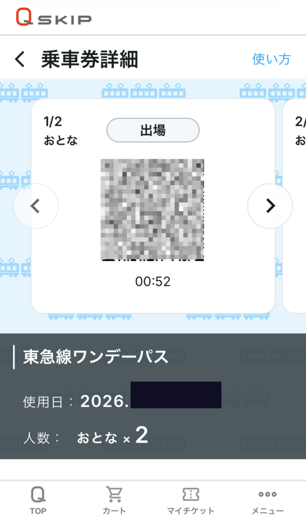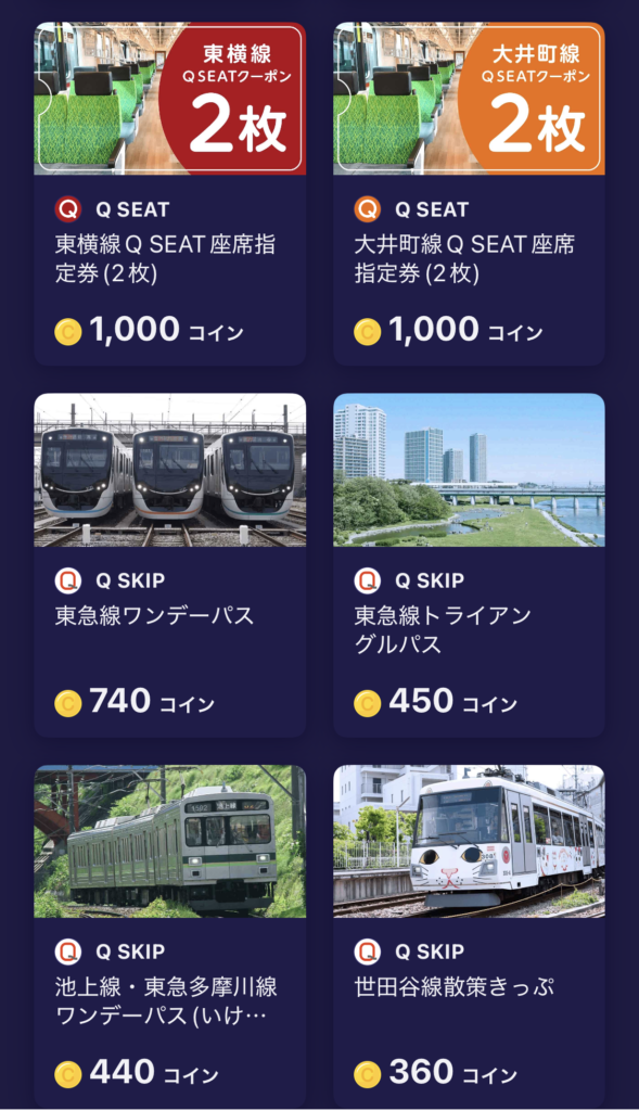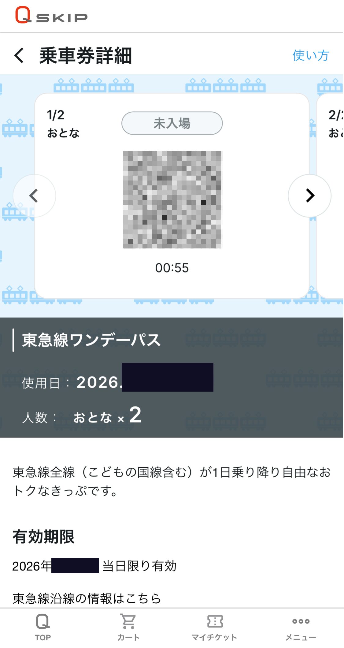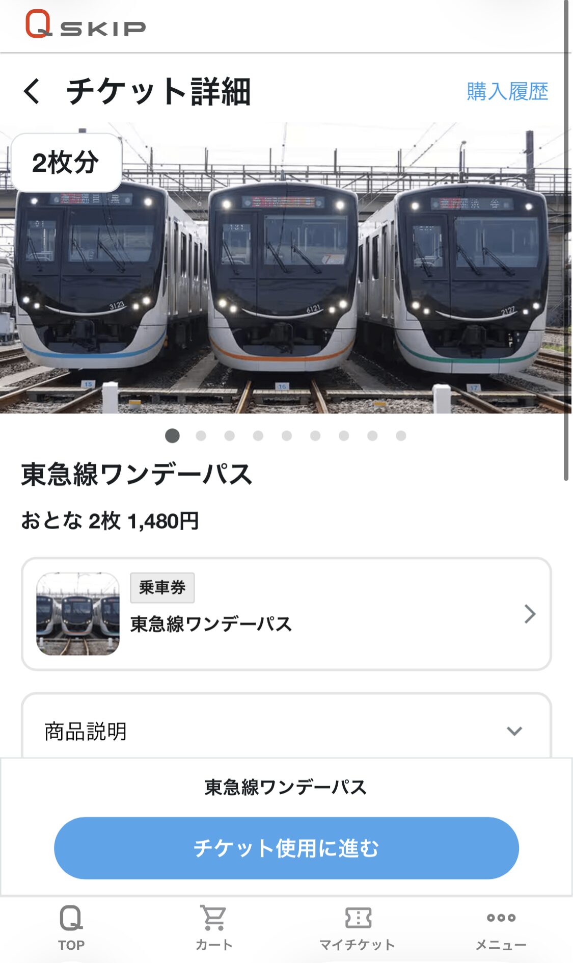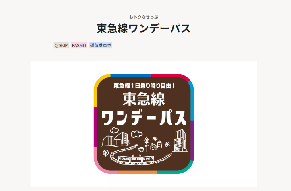 - 東急線ワンデーパスが 通常780円 → Q SKIP限定740円